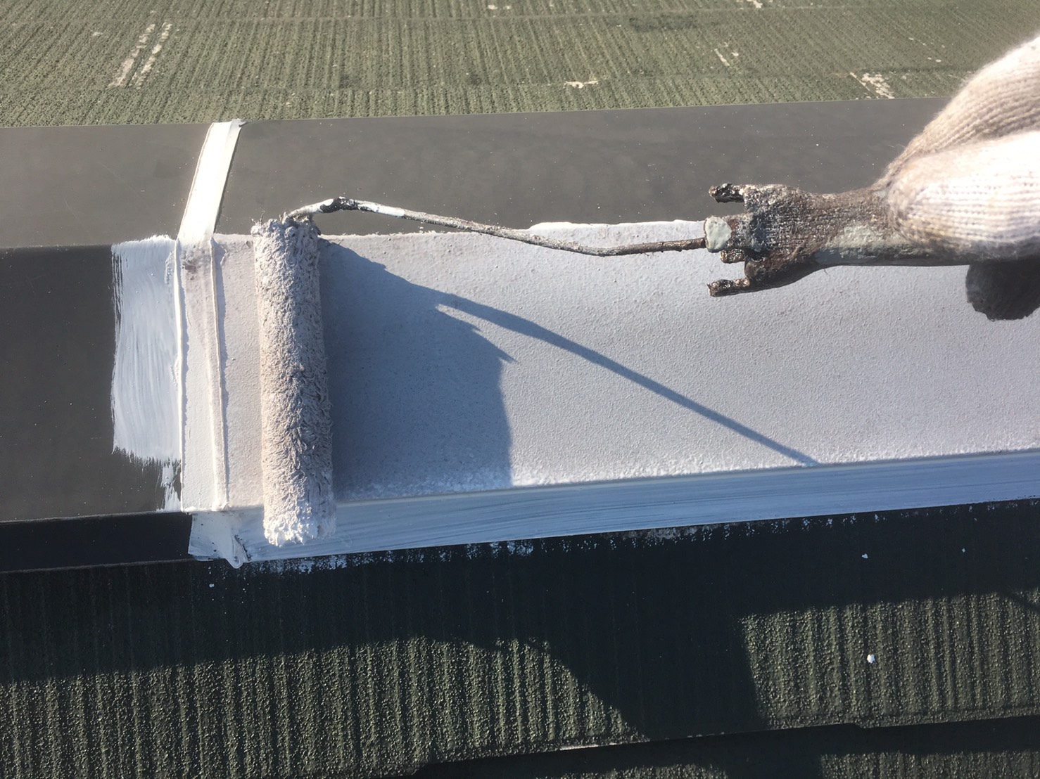 屋根 棟板金 下地処理の仕上げは、錆止めです。