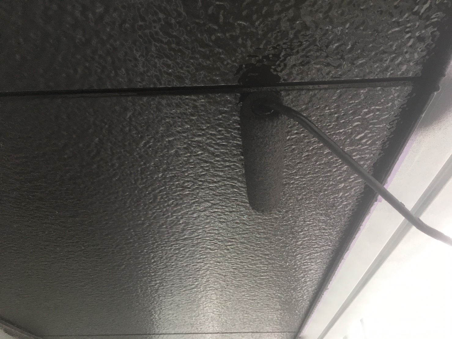 屋根塗装の下塗りです。使用塗料は「エスケー化研 マイルドシーラーEPO」です。1回目はローラー、2回目は吹付で行いました。