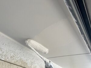 軒天の塗装です。軒天は薄汚れている事はありますが、紫外線や風雨の影響を受けにくい部位なのでで大きな破損等は無く、ぱっと見は綺麗という場合がほとんどです。ですが、湿気が溜まりやすい部分ですので塗装でメンテナンスする必要があります。塗装の際は湿気に強い塗料をしようし乾いた状態を保てるようにします。