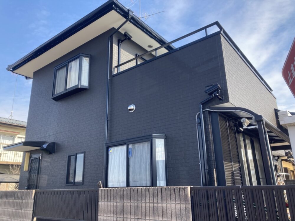 【施工事例】グランディハウスの外壁塗装|ダークグレー仕上げ