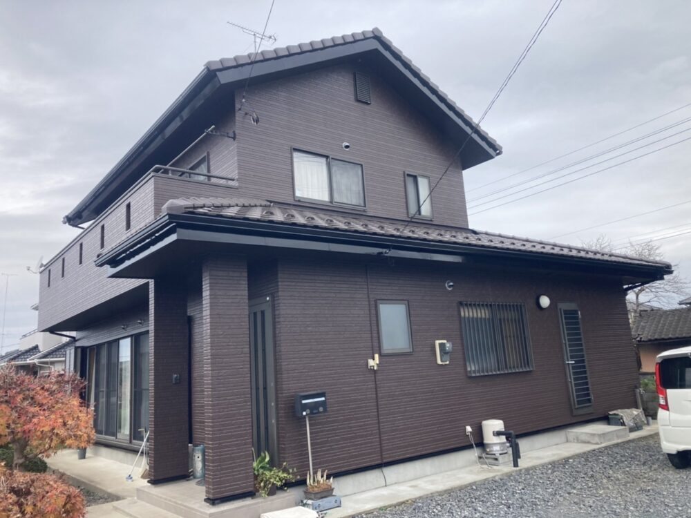 小山市内の戸建て住宅にて、外壁塗装を行いました。築年数の経過とともに全体のくすみや色あせが見られ、「今の雰囲気はあまり変えずに、きれいにしたい」というご相談をいただきました。