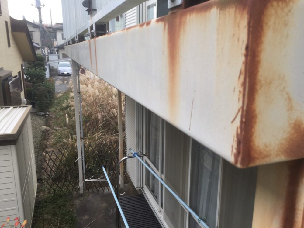 外壁まわりの金属部分にサビが見られる場合は、塗装の保護力が弱っているサインです。水切りやベランダの金物、釘まわり、シャッターボックスなどは、雨や湿気の影響を受けやすい部分です。