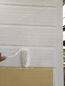 外壁の下塗りです。外壁塗装の見積もりを出してもらったときに、下塗りに何を使うかは明記されているでしょうか。塗装を行う家は、築15年程度経過していますので外壁下地の傷みが進行している状態と考えられます。傷んでしまった強く丈夫に復活させてくれるのが下塗りの効果です。外壁の種類も様々ですから、下塗りの種類も様々です。外壁の状態に合った下塗りを行うことで、その後の上塗りが引き立ちます。塗装のお見積りをされた際は、下塗りについても説明してくれる業者さんはしっかり塗装をしてくれると思いますよ(^^)