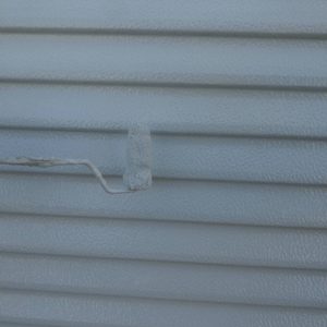 軒天塗装です。今回、軒天下地の傷みがありましたので下塗りも行いました。軒天は風雨や紫外線に当たりにくいので現地調査をすると割と綺麗な場合が多いです。ですが、逆に湿気が溜まりやすく湿気による傷みを受けやすい場所です。表面を触ってみると、水分を含んだような感じであることもあります。塗装の際は湿気に強い塗装を行い、できるだけ乾いた状態を保てるようにします。