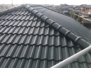 屋根の上塗り塗装、施工後です。色褪せや細かい剥がれがあった屋根でしたが、とてもきれいになりました。上塗り材は無機ハイブリッド塗料を使用しましたので、耐久性抜群!!これからも長持ちしてくれることでしょう(^^)