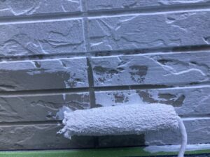 シーリング後は塗装をしていきます。下塗りは密着性の高い下塗り材を使用しています。上塗りはラジカル制御系の人気塗料です。色はダークグレーで塗装をしました。グレー系はとても人気で、よく選ばれている塗装の色です。