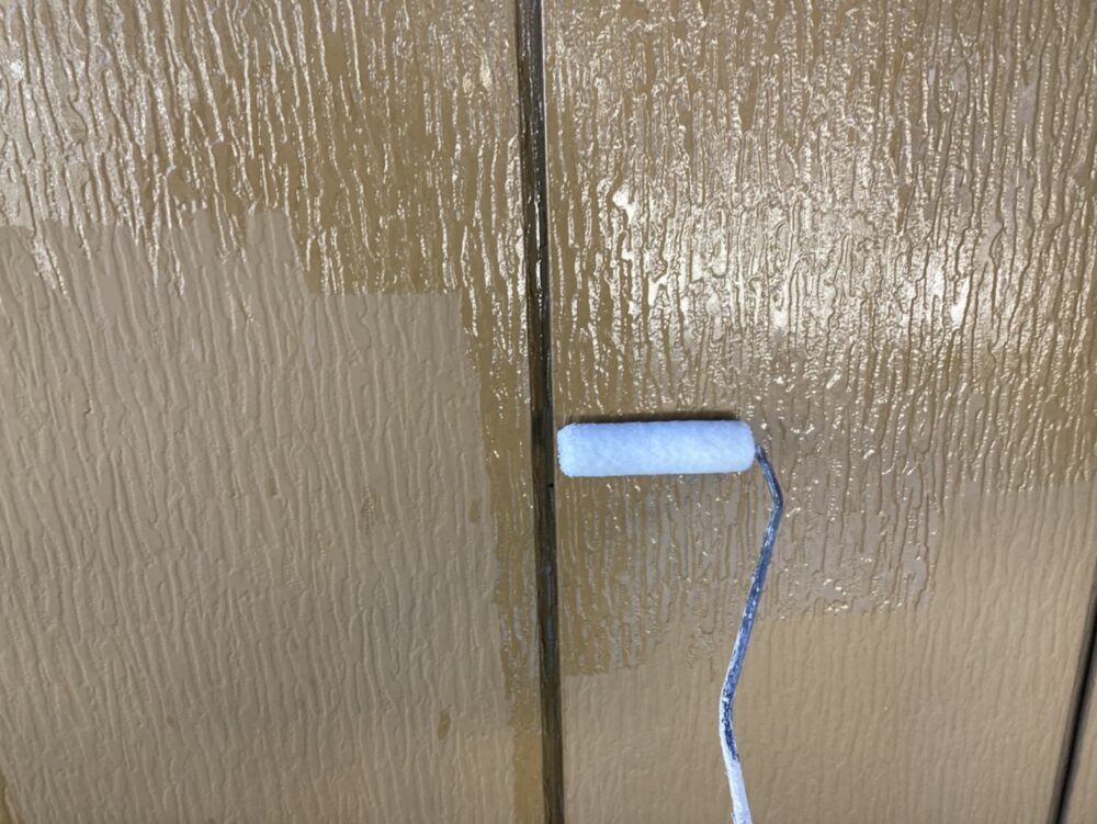 玄関周りのセメント系外壁部分はベージュ系で塗装をしました。今回、色々な外壁材がありましたので、それぞれ仕様を変えて塗装をしています。特に下塗りについては外壁に合ったものを使用することで長持ちに繋がります。