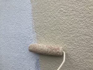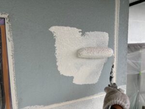 外壁の下塗りです。今回ALCということで、セメント系の外壁ですので適合した下塗り材を使用しています。しっかりと浸透させ下地から丈夫にしていきます。