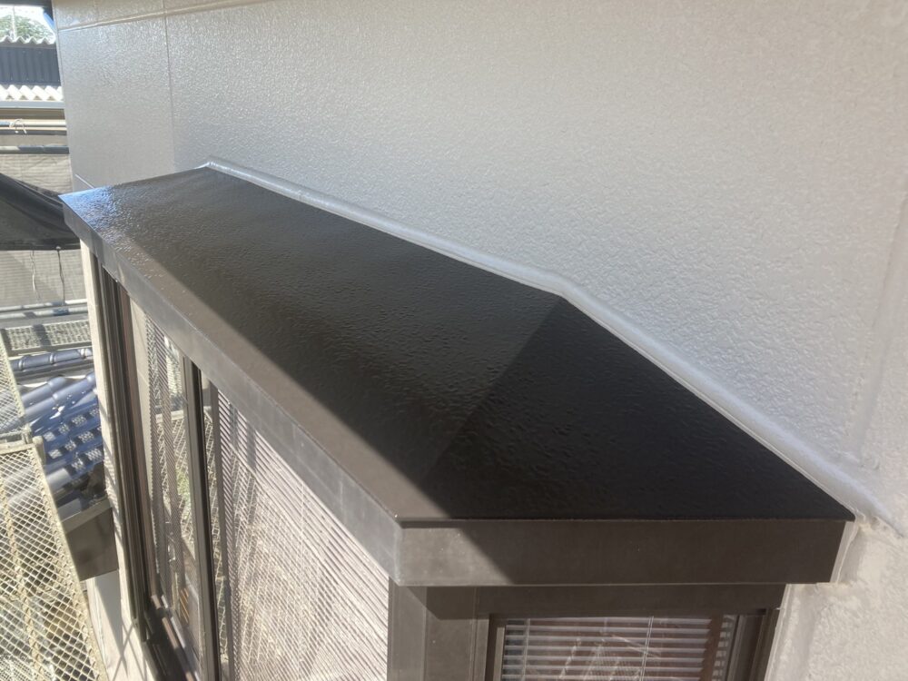 付帯部塗装の施工後です。雨戸や出窓部分の庇なども綺麗になりました。付帯部も家を守る大切な部位です。外壁と同様に十分な耐久性の塗装を行う事で、長期に渡り綺麗な状態が続き長持ちしてくれます。
