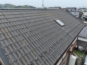 屋根・外壁の汚れ、色褪せが進行していました。全体的に塗り替え時期を迎えています。