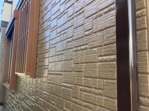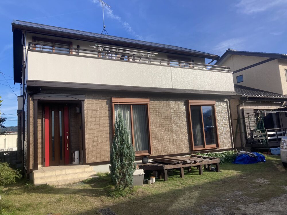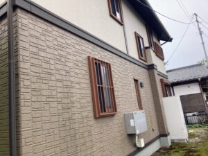 外壁塗装と付帯部塗装が完了しました。外壁はもちろん、破風や雨樋、軒天などの付帯部も丁寧に塗装することで、建物全体に統一感のある美しい仕上がりとなりました。見た目が整うだけでなく、紫外線や雨風から各部材を守り、劣化の進行を防ぐ効果も高まっています。細かな部分までしっかり施工することで、住まいを長く安心して維持できる工事となりました。
