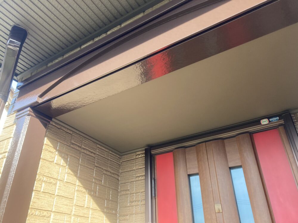 破風塗装では、まずケレン作業で汚れや古い塗膜を落とし、塗料がしっかり密着するよう下地を整えます。その後、下塗り・上塗りを行い、耐久性のある仕上がりに。仕上げの色はブラウンで、外観に落ち着きと統一感が生まれました。破風は雨風や紫外線を受けやすい部分のため、定期的な塗装で劣化を防ぎ、住まいを長く守る効果があります。