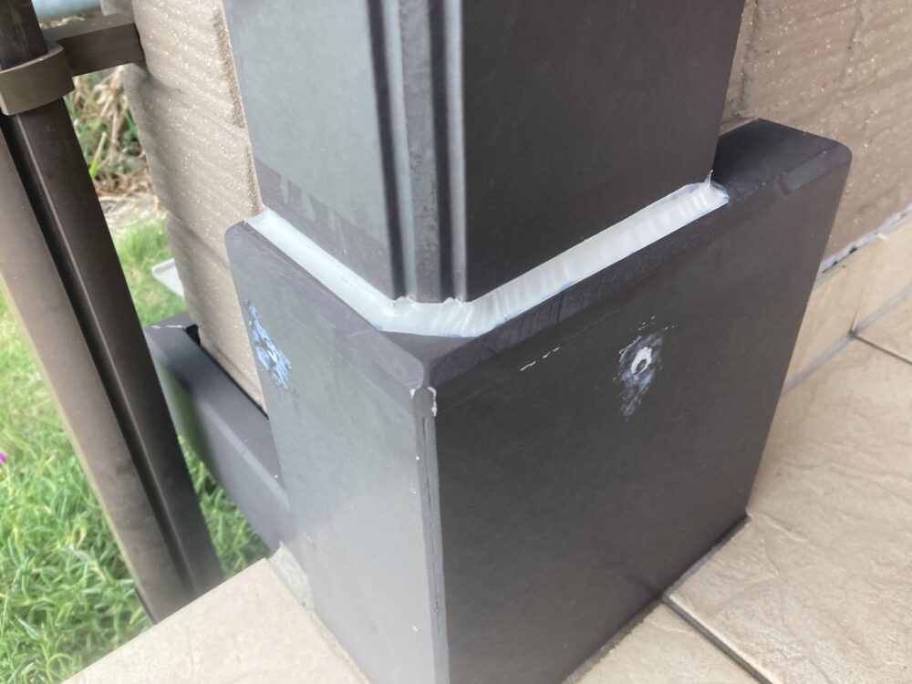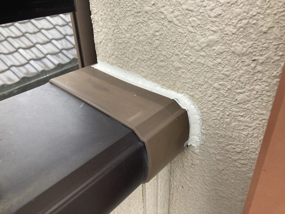 外壁塗装工事では、付帯部まわりのシーリング補修も行いました。サッシまわりなどの継ぎ目やすき間は、劣化すると雨水が入りやすくなります。古いシーリングを整え、必要な部分に新しく充填することで、防水性を回復。塗装前にしっかり補修しておくことで、仕上がりがきれいになり、建物全体を長く守ることにつながります。