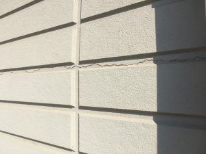 外壁目地に関して、セキスイハウス住宅はガスケットという目地になっており打ち替えはできません。ですが、目地部を守るために専用の塗料があります。一部、通常のシーリングを使用している箇所がありました。硬化、ひび割れしていますので打ち替えを行います。