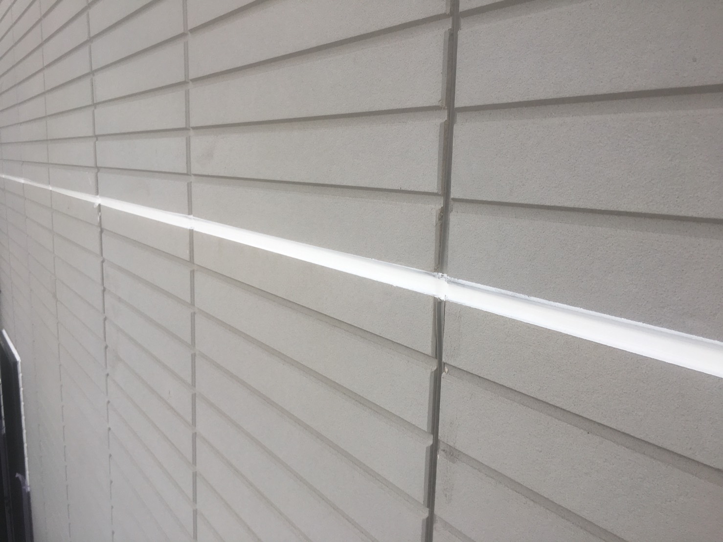 外壁の補修が続きます。外壁に対して横に入っている目地部分の補修です。シーリングと呼ばれる外壁の繋ぎ目のゴムの部分が傷んでしまっていたりひび割れていたりしています。シーリング部が傷んでいると雨水が入り込み、外壁に影響してしまいます。