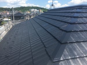 今回の屋根はセキスイモニエル瓦です。セメント系の屋根材になります。セキスイハウス、セキスイハイムの住宅に関してはこちらの屋根材のお住まいがほとんどです。