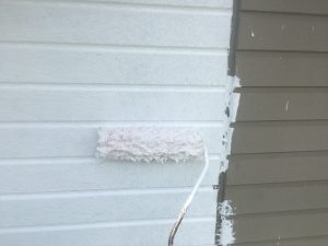 今回は下塗りから行いました。下塗り材は、弱くなってしまった素地を強化してくれる効果があります。