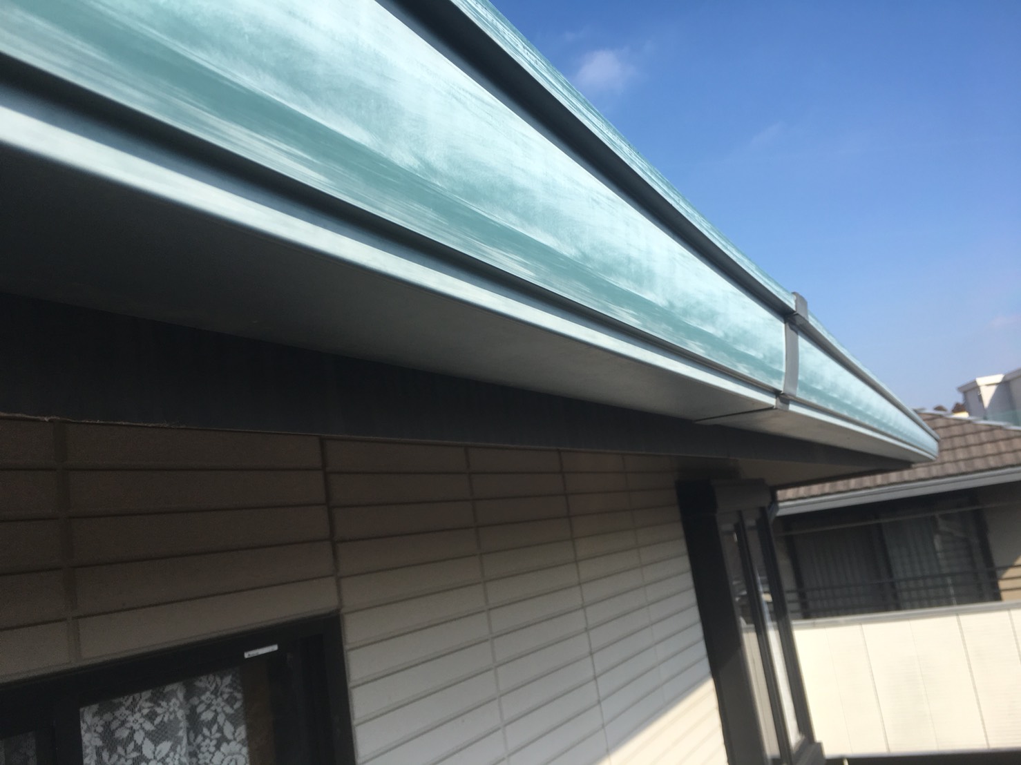 ローラーや吹付等で上塗りを行います。こういった付帯部こそ耐久性の良い塗装をするべきだと思っています。外壁に高グレード、付帯部は低グレード塗装ではバランスが悪いです。数年後に付帯部だけの劣化が早まってしまうのは、もったいない気がします。