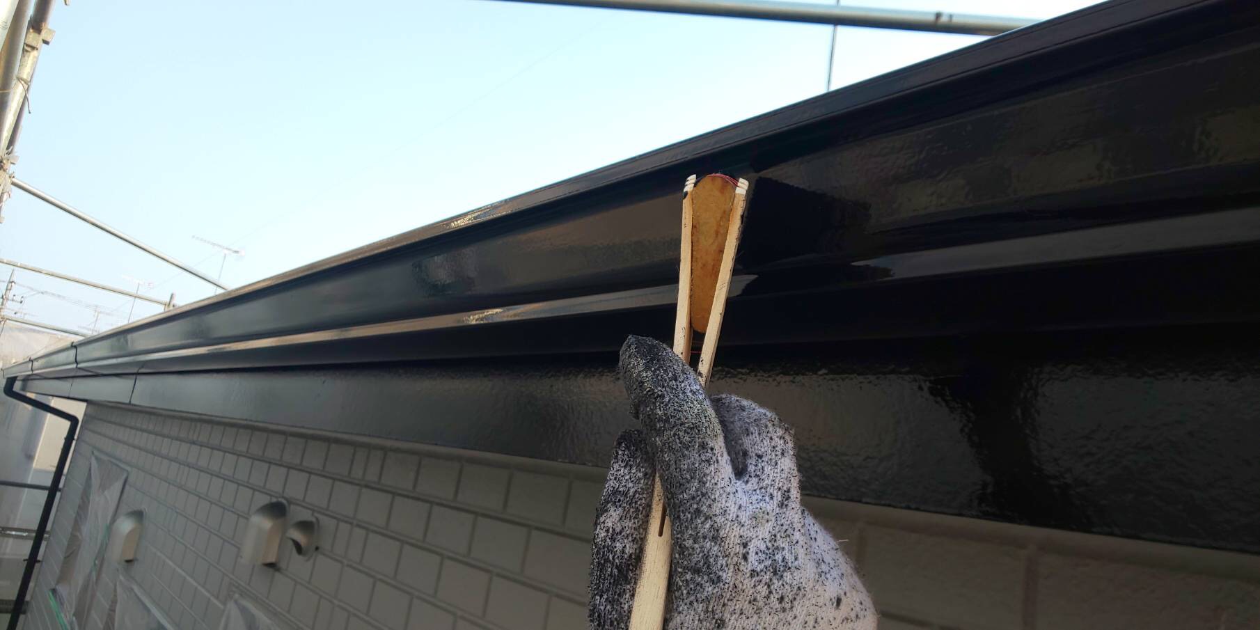 雨樋など、付帯部の塗装です。まずは全体的にケレンという作業をします。ケレンとは、金属製のヤスリでひたすら磨く作業です。洗浄で落としきれなかった古い塗装の膜や細かい汚れなどを落とします。また、磨くことで表面に傷がつきますので塗料がのりやすくなるという効果もあります。
