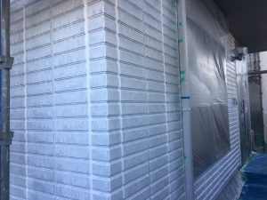 2種類目の下塗り材は、この後に行う上塗り材の密着性を高める下塗り材です。密着性が高いだけあってとてもベタベタしてます。でも、この真っ白がとってもきれいで塗り終わった日は、お客様もビックリするくらい白いです(*^_^*)
