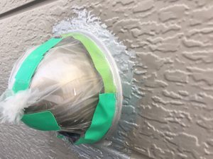 軒天塗装です。現地調査をしたときに、軒天はあまり傷んでいないという場合がほとんどです。屋根や外壁のように強い紫外線や風雨に当たることはほとんどありませんので比較的綺麗な状態ということが多いですね。ですが、気を付けていただきたいのが湿気です。日も当たらない、風通しもあまりよくないですので一度湿気が溜まると乾くまでに時間がかかります。見た目はきれいでも表面がブヨブヨとしてきてしまったり、よくみたら雨漏りのような染みがあることもあります。湿気が溜まりやすい軒天ですので、塗装の際は湿気に強い塗装を行い乾きやすい状態を保てるように仕上げていきます。
